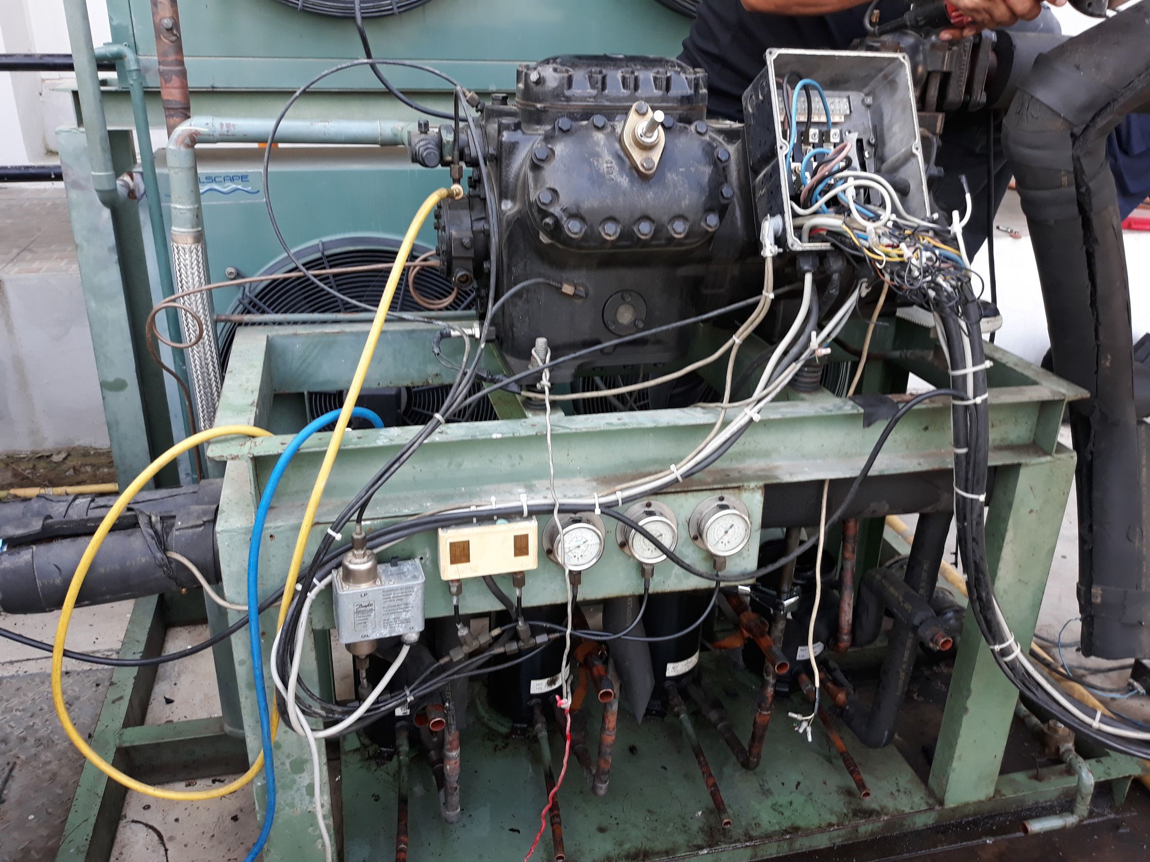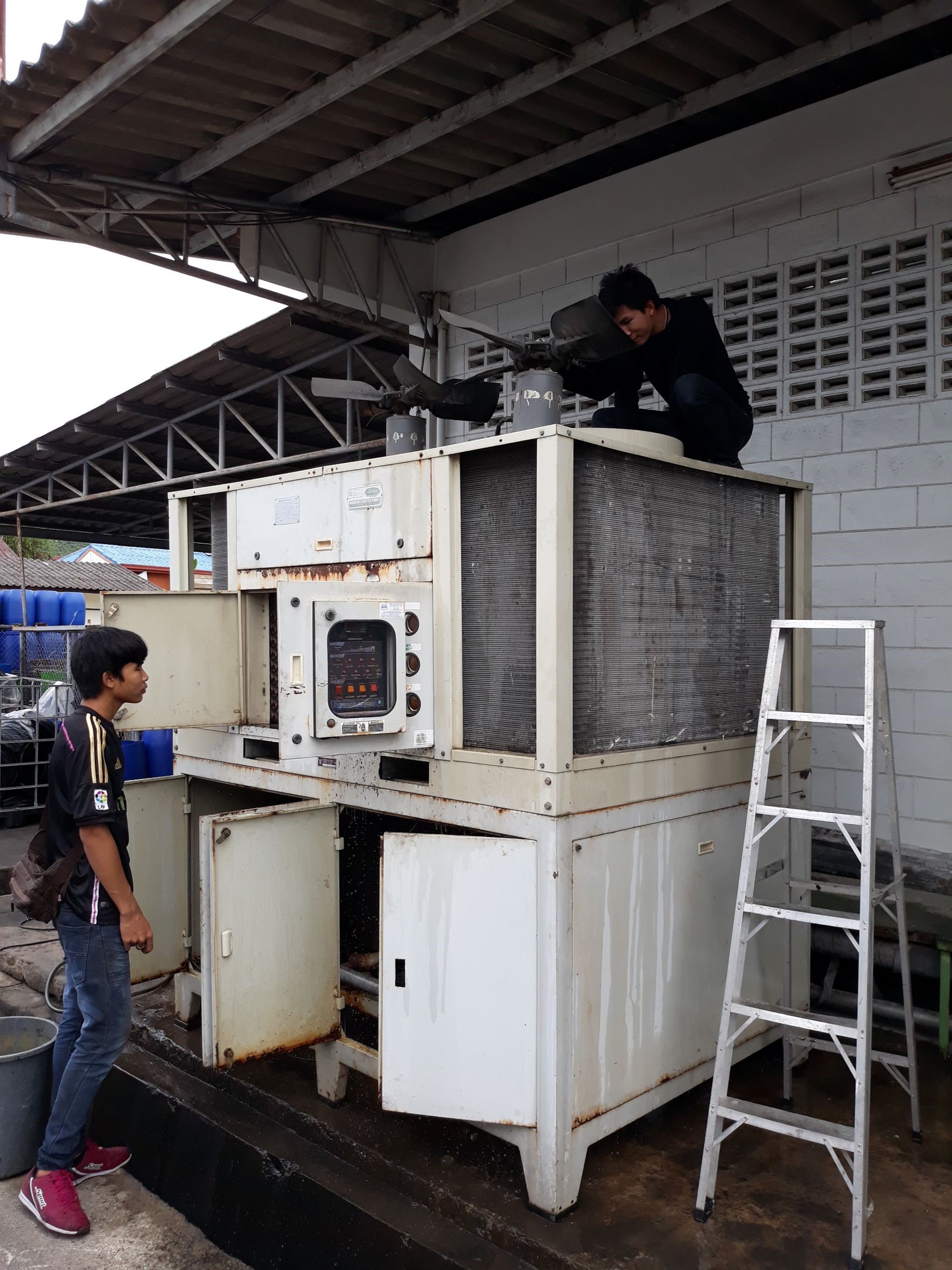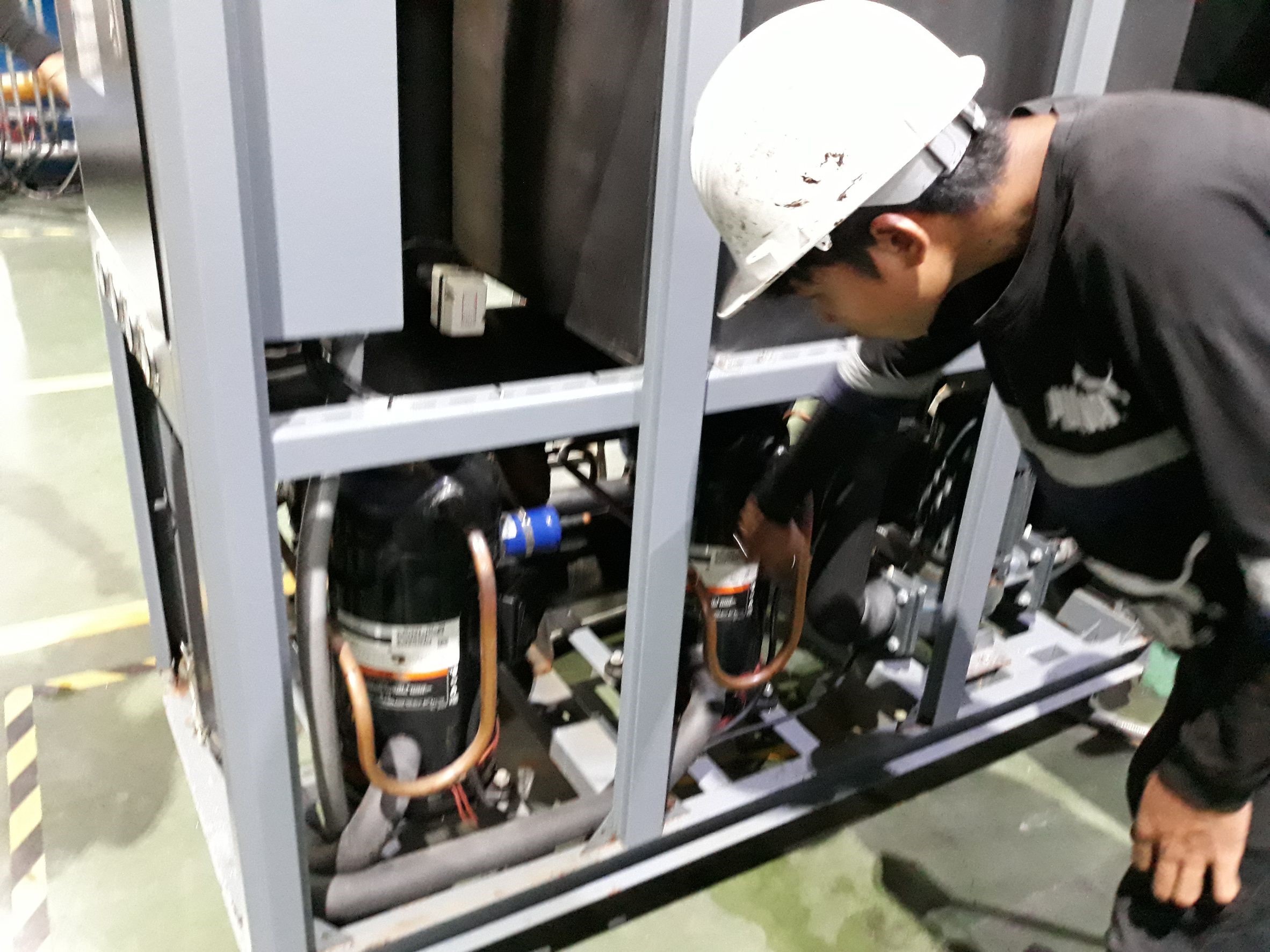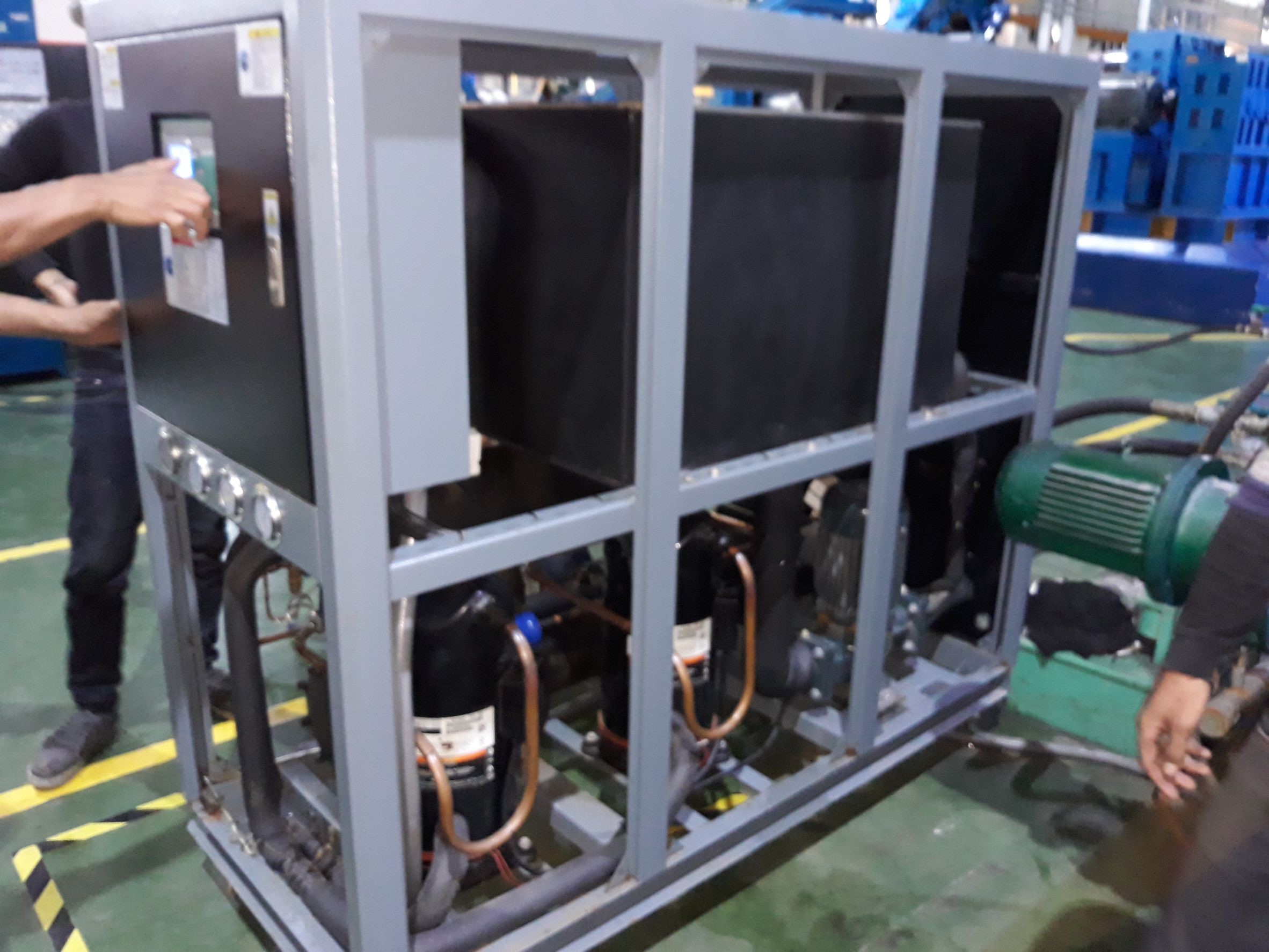 • งานติดตั้งเครื่องทำความเย็นให้กับตู้คอนโทรลไฟฟ้าของโรงงานและระบบทำความเย็นมีตู้คอนโทรลที่สมบูรณ์